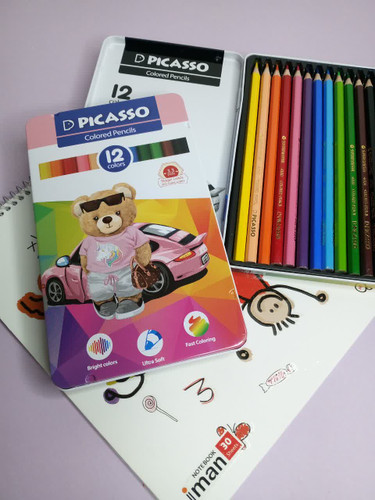 مداد رنگی ۱۲ رنگه جعبه فلزی اولترا سافت پیکاسو