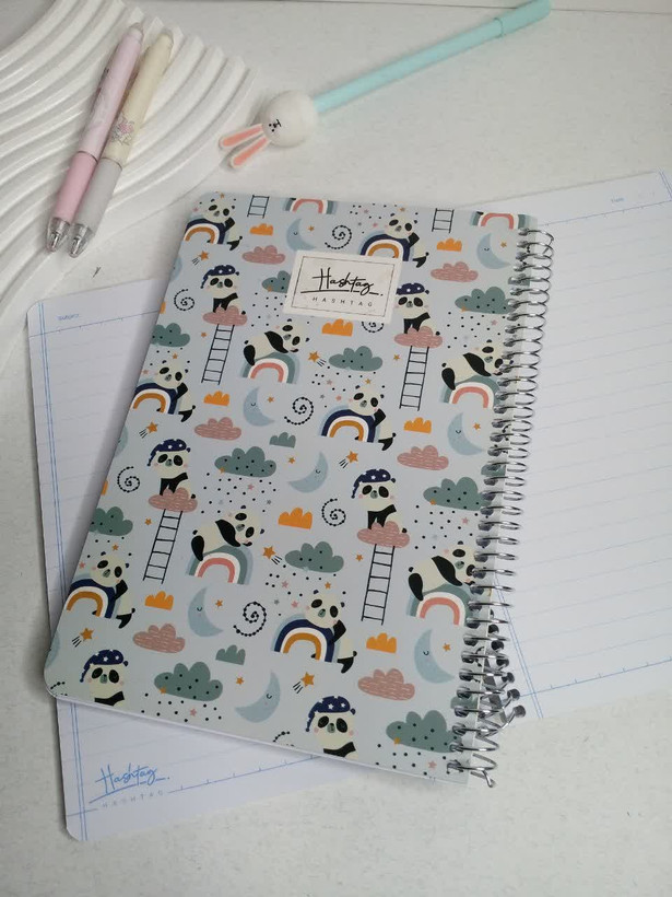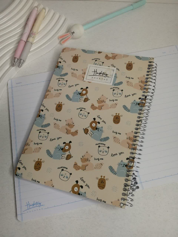 دفتر ۱۰۰ برگ تحصیلی هشتگ با صحافی سیمی دارای جلد مقوایی و کاغذ سفید و بادوام است و دارای طرحهای زیباست