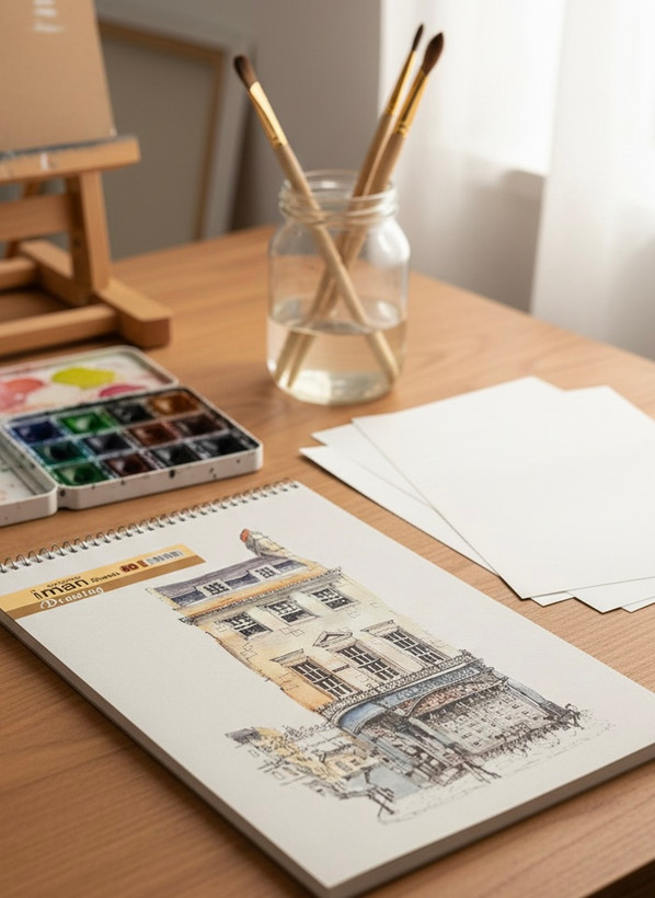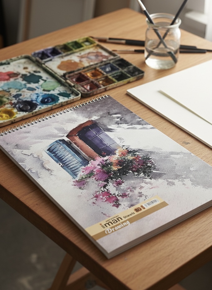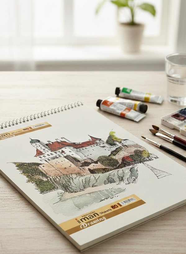دفتر طراحی بزرگ ۸۰ برگ بالکیایمان با جلد گلاسه مقاوم مناسب نقاشی، طراحی، اسکیس و استفاده روزمره هنرجویان و دانشآموزان در قطع ۲۴ در ۳۴