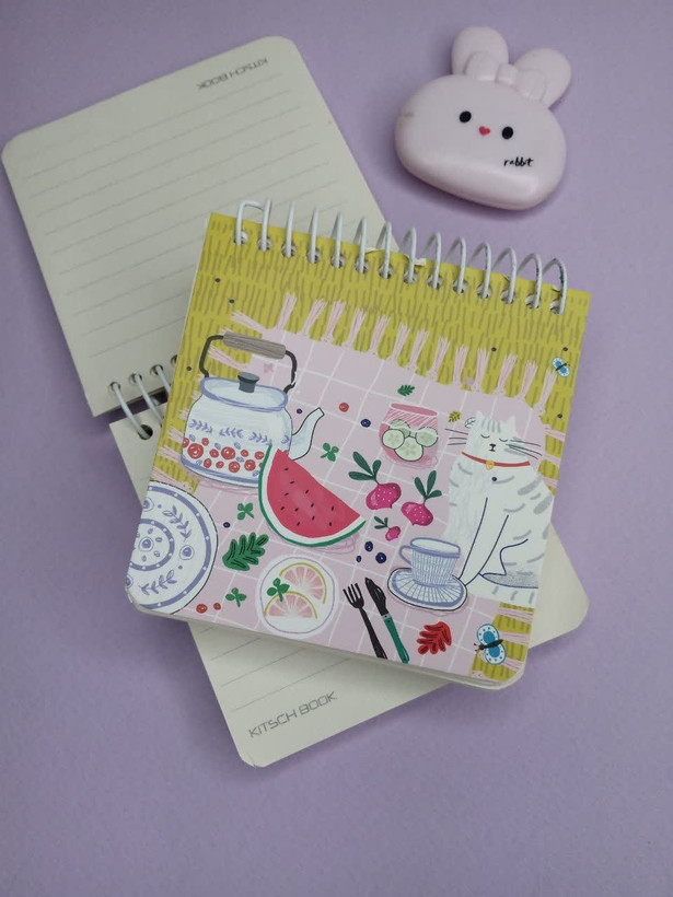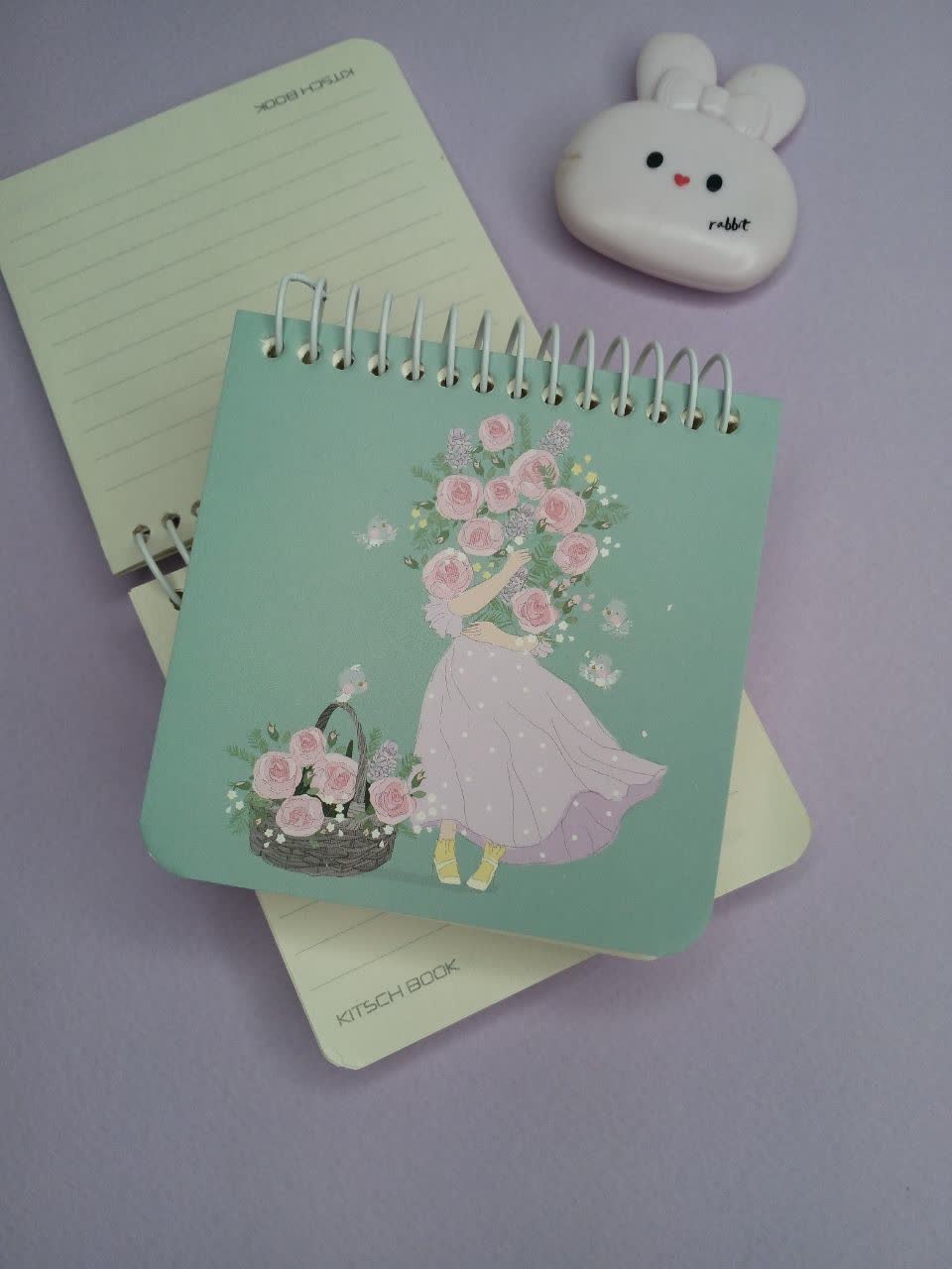 دفتر یادداشت مربعی ۸۰ برگ در قطع ۹.۳×۹.۳ سانتیمتر با صحافی سیمی مقاوم و طراحی خاص و کاغذ بالکی نخودی و جلد مقوایی فانتزی دفتری سبک و کاربردی مناسب یادداشتهای روزانه ،برنامهریزی و استفاده دانشآموزان و سایر افراد با هر شغل و حرفهای است