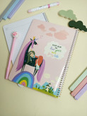 دفتر مشق ۵۰ برگ کیچ بوک دارای جلد مقوایی گلاسه یک دفتر کاربردی با طرحهای بسیار زیباست این دفتر دارای صحافی سیمی است و به خاطر سبکی به راحتی قابل حمل و نقل در کیف است این دفتر در قطع ۲۴×۱۷ سانتیمتر است